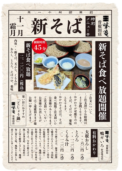 新そば食べ放題開催のお知らせ